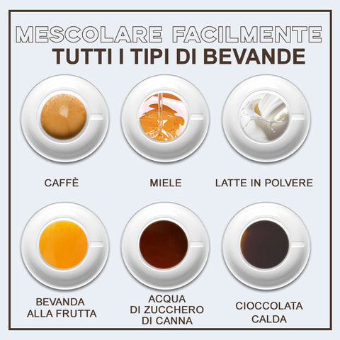 Quickly mix drinks without the effort of shaking or stirring. You no longer have to worry about getting to the bottom of your hot chocolate or soup and finding a thick residue.