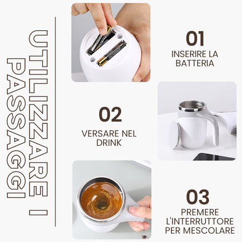 The Self Shaking Electric Coffee Mug Powered by two AAA batteries is a great accessory to have in the kitchen and office!